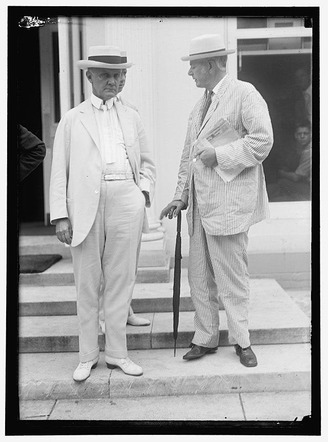 Harding also began slowly freeing a total of 147 federal prisoners convicted during the war whose sentences had not yet been commuted by Wilson following the repeal of the Sedition Act. Wilson had refused to commute the sentence of Eugene Debs, who had still, while incarcerated, managed to win more than 900,000 votes in the presidential race as the Socialist Party candidate.[61] Harding not only freed Debs in time to let him spend Christmas with his family, he invited him to a one-on-one meeting at the White House on December 26, 1921. When shown into the President’s office, Debs was startled to see Harding “bounding out of his chair,” exclaiming, “Well, I have heard so damned much about you, Mr. Debs, that I am now very glad to meet you personally!”[62] Debs was happy to be free, but as he received a commutation of sentence and not a pardon, he did not regain the right to vote, nor did he have much of a viable third party to represent, the Socialist Party having been thoroughly decimated by wartime repression.