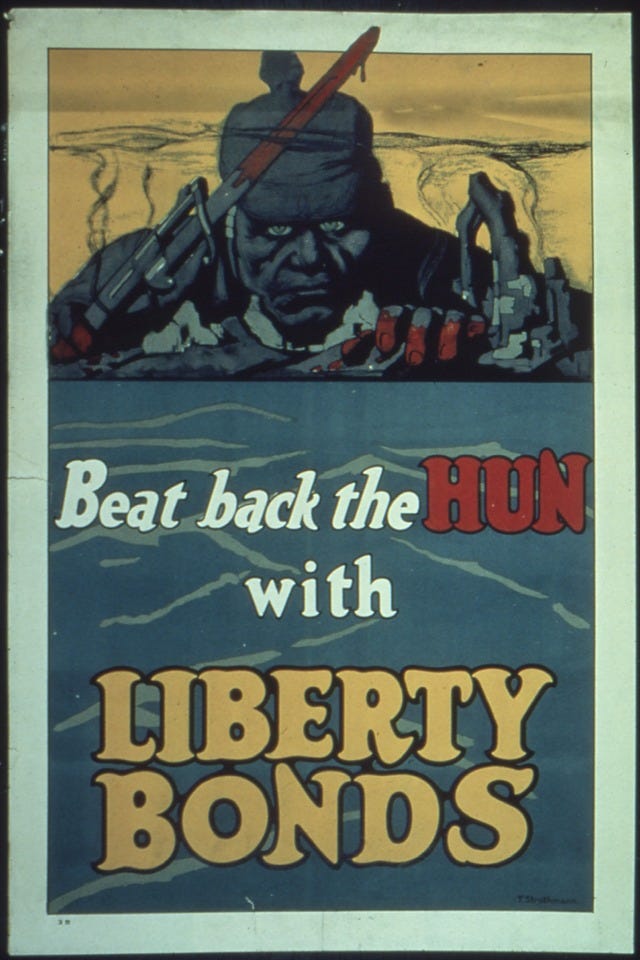 The CPI’s Division of Pictorial Publicity employed visual artists to design posters, “powerful imagery designed to boost enlistments, demonize the enemy, sell war bonds, and galvanize the home front.”[21] Some of these posters are now iconic, such as the Uncle Sam “I want you!” recruitment poster for the U.S. Army.